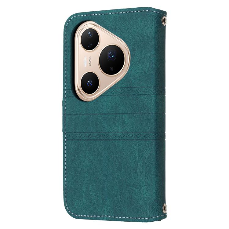 Funda de cuero con textura de rayas en relieve para Huawei Pura 80 Pro 5G / 80 Pro+ 5G (verde oscuro)