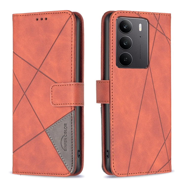 Funda de Cuero con Textura de Rombos y Hebilla Magnética para Realme C75 4G (Marrón)