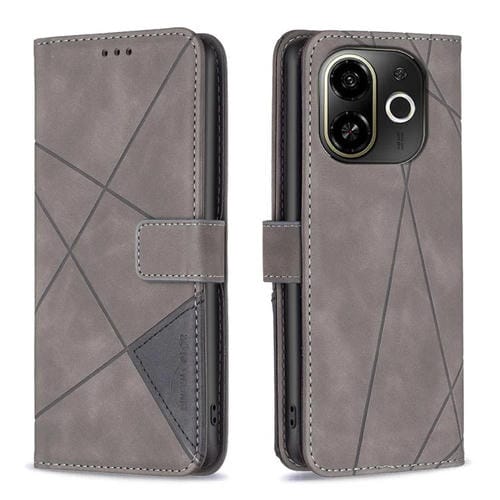 Funda de Cuero para Tecno Pop 9 5G y Spark 30C 5G con Textura de Rombos y Hebilla Magnética (Gris)