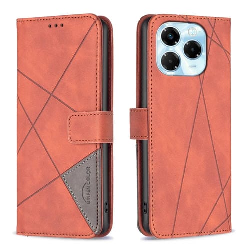Funda de Cuero Infinix Note 40X 5G con Textura de Rombos y Hebilla Magnética (Marrón)