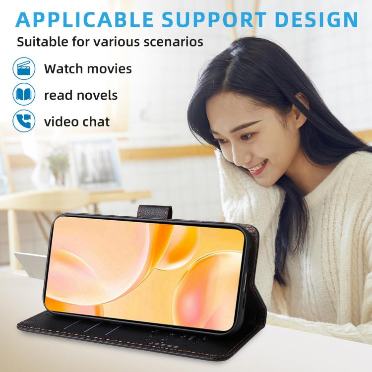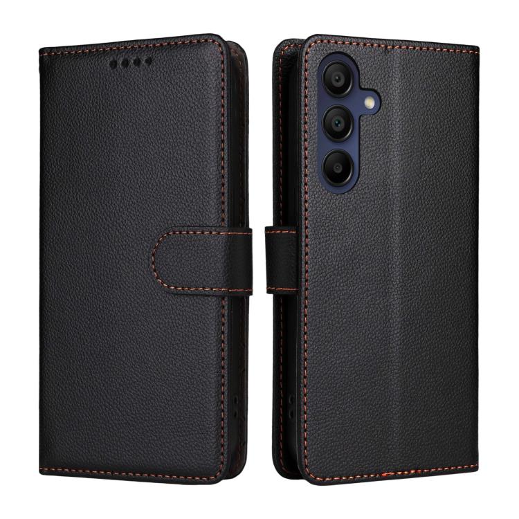 Funda de cuero con textura Litchi para Samsung Galaxy A15 4G/5G, con bloqueo RFID y capacidad para 3 tarjetas (negra)