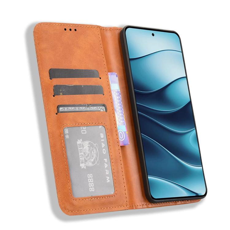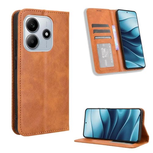 Funda de Cuero con Textura Retro y Hebilla Magnética para Redmi Note 14 4G Global de 163,25mm (Marrón)