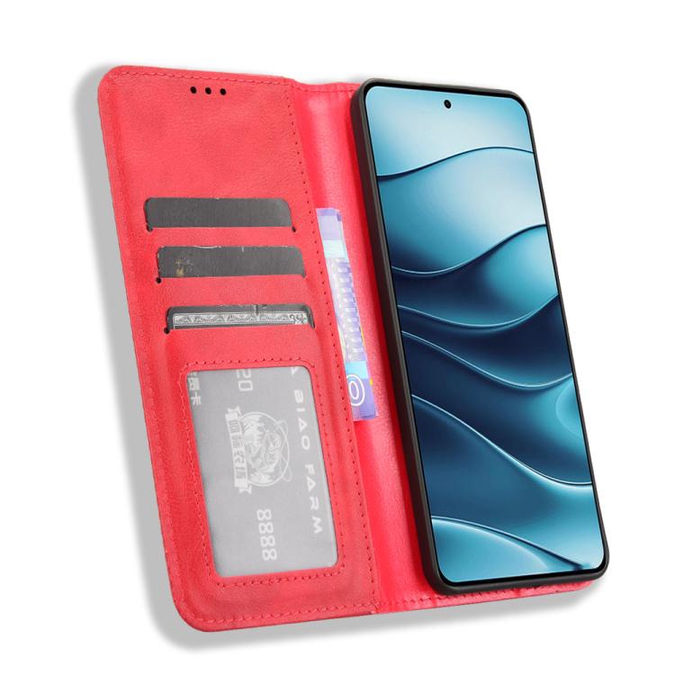 Funda de Cuero con Textura Retro y Hebilla Magnética para Redmi Note 14 4G Global de 163,25mm (Rojo)