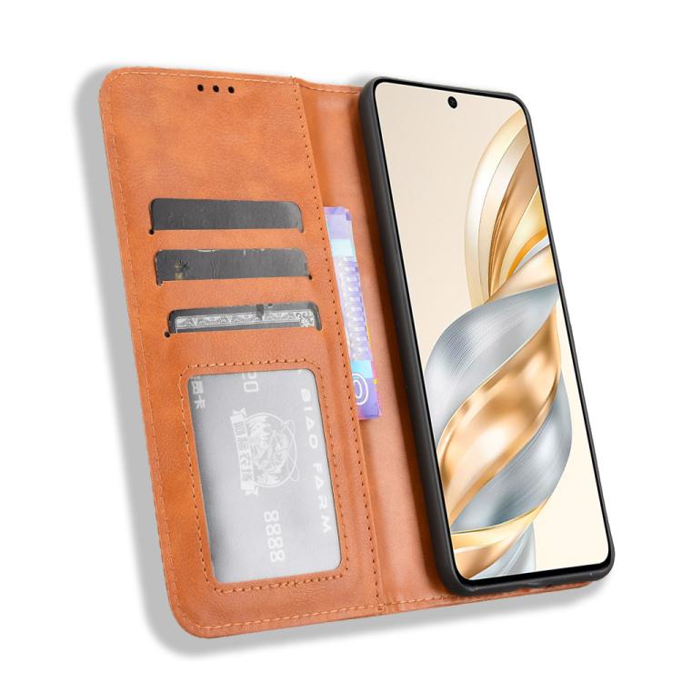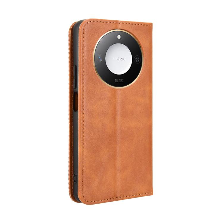 Funda de Cuero para Honor X60 5G X9C con Textura Retro y Hebilla Magnética (Marrón)