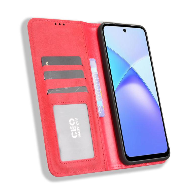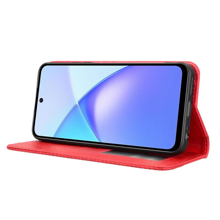 Funda de cuero con textura retro y hebilla magnética para Infinix Smart 10 / Tecno Pop 10 4G (roja)