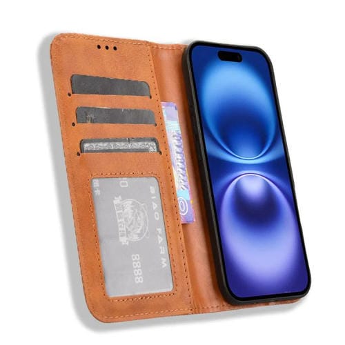 Funda de cuero con textura retro y hebilla magnética para iPhone 17 (marrón)