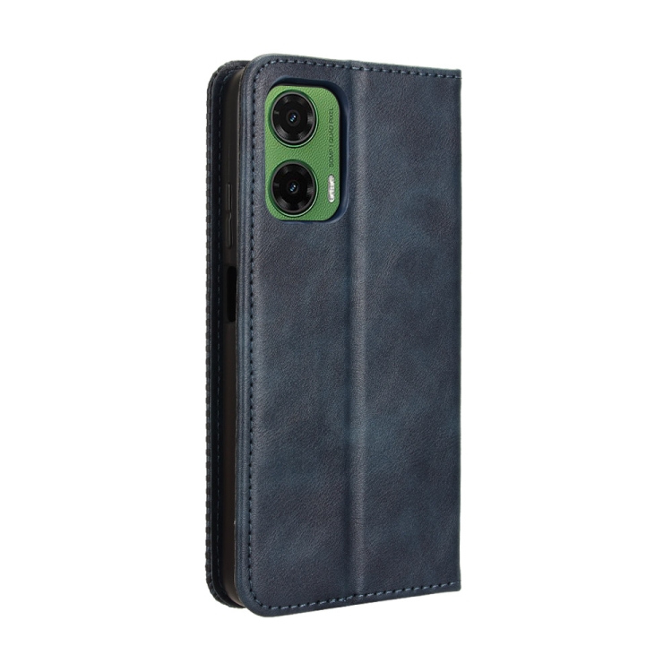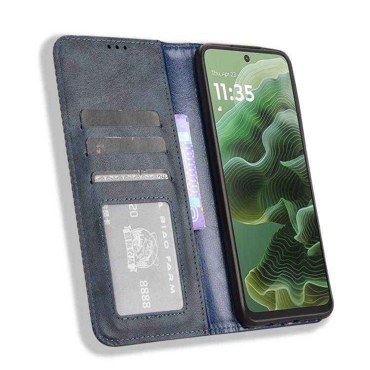 Funda de Cuero Motorola Moto G35 5G con Textura Retro y Hebilla Magnética (Azul)
