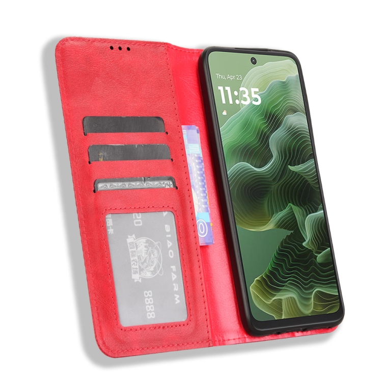 Funda de Cuero Motorola Moto G35 5G con Textura Retro y Hebilla Magnética (Roja)