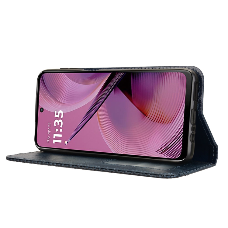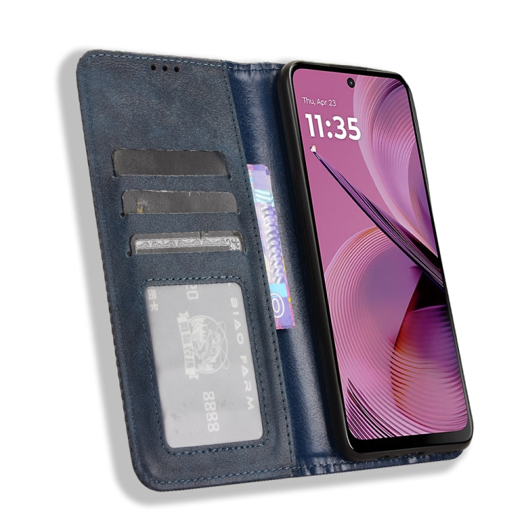 Funda de Cuero Motorola Moto G55 5G con Textura Retro y Hebilla Magnética (Azul)
