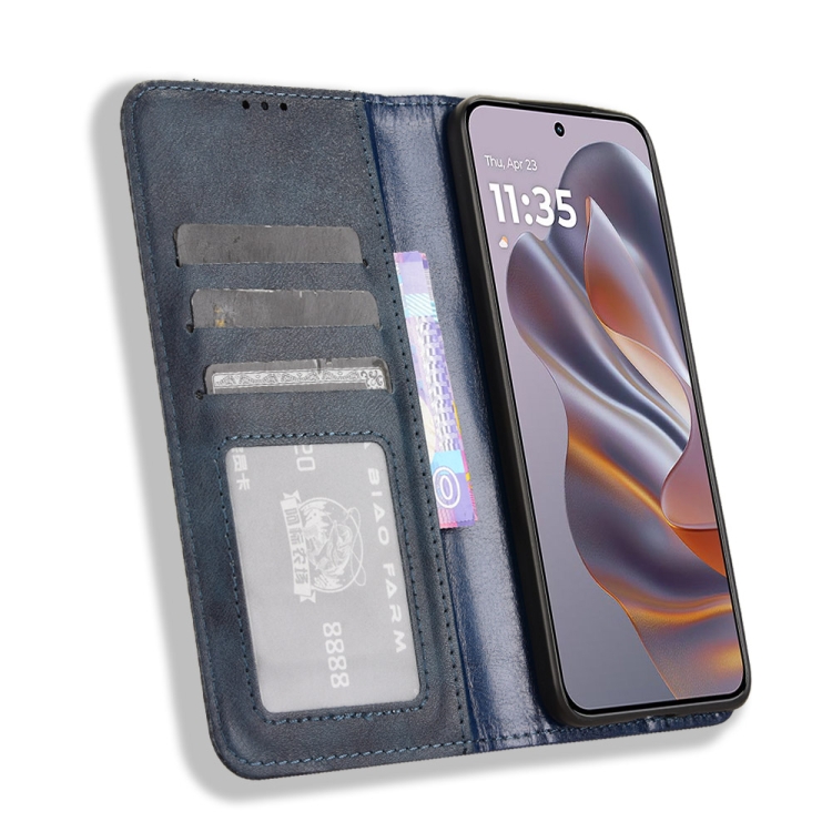 Funda de Cuero con Textura Retro y Hebilla Magnética para Motorola S50 5G / Edge 50 Neo (Azul)