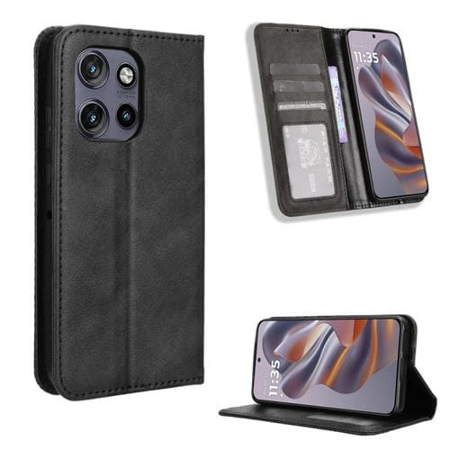 Funda de Cuero Motorola S50 5G Edge 50 Neo con Textura Retro y Hebilla Magnética (Negro)