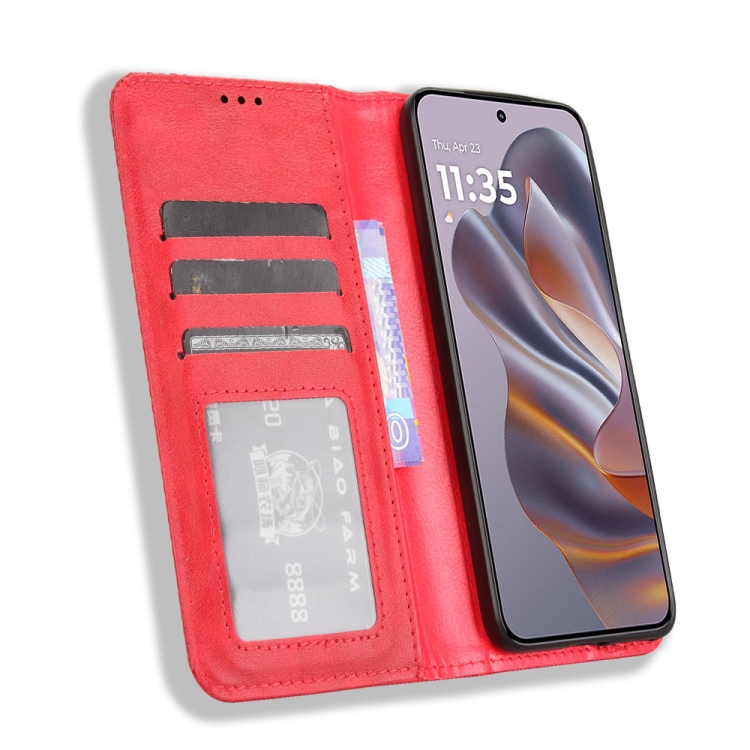 Funda de Cuero con Textura Retro y Hebilla Magnética para Motorola S50 5G / Edge 50 Neo (Roja)
