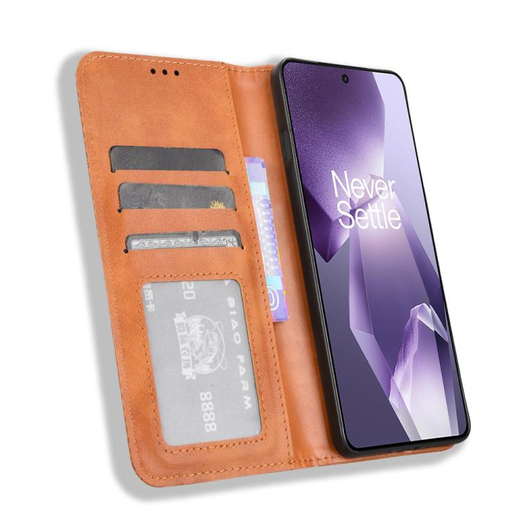Funda de Cuero OnePlus Ace 5 5G / 5 Pro 5G / 13R 5G Textura Retro Hebilla Magnética (Marrón)