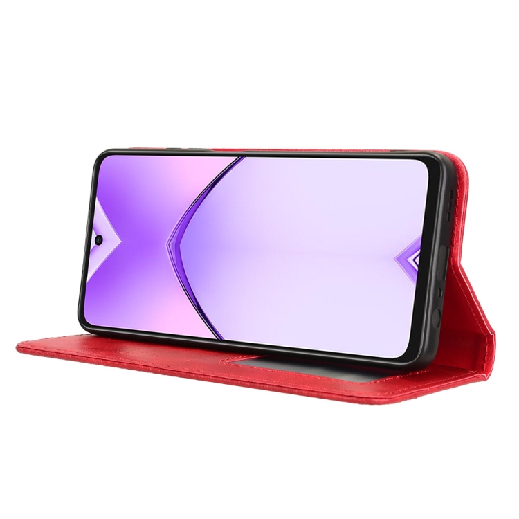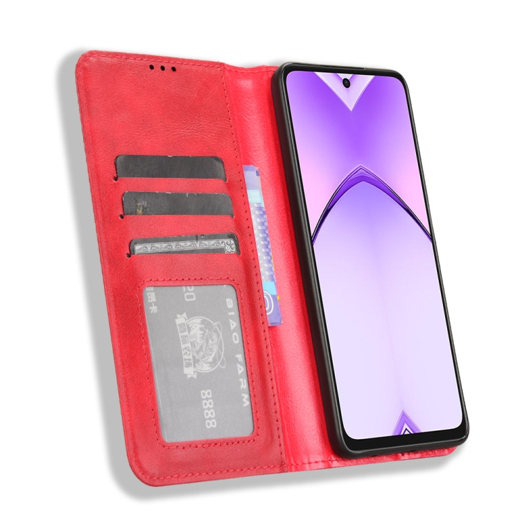 Funda de Cuero con Textura Retro y Hebilla Magnética para Oppo A3X 5G India (Rojo)