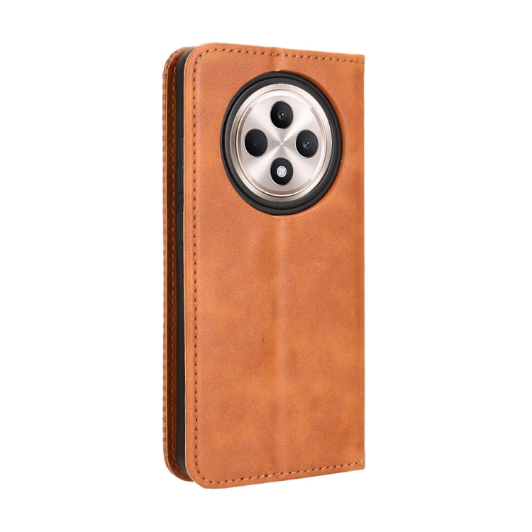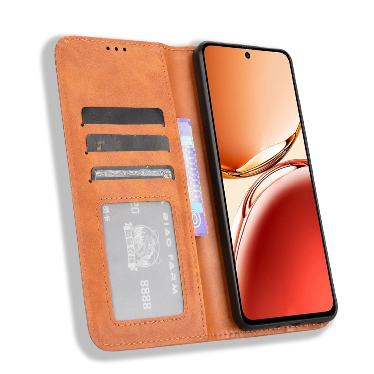 Funda de Cuero con Textura Retro y Hebilla Magnética para Oppo Reno12 F 5G (Marrón)