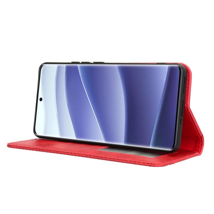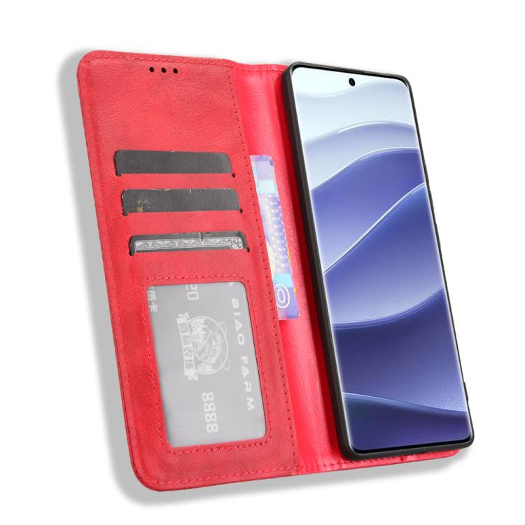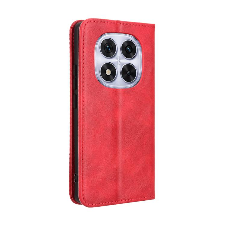 Funda de Cuero con Textura Retro y Hebilla Magnética para Redmi Note 14 Pro+ 5G (Roja)
