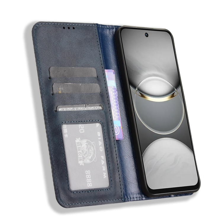 Funda de Cuero con Textura Retro y Hebilla Magnética para Tecno Spark 30C 4G (Azul)