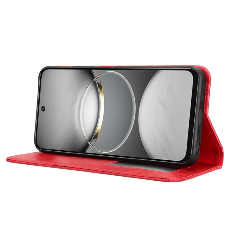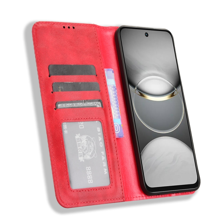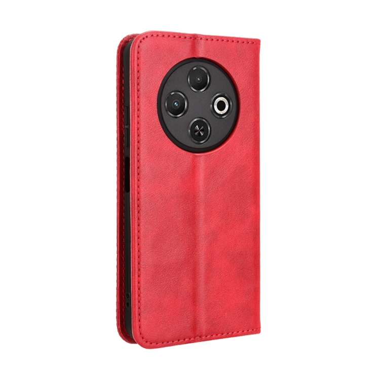 Funda de Cuero para Tecno Spark 30C 4G con Textura Retro y Hebilla Magnética (Rojo)