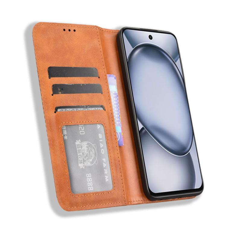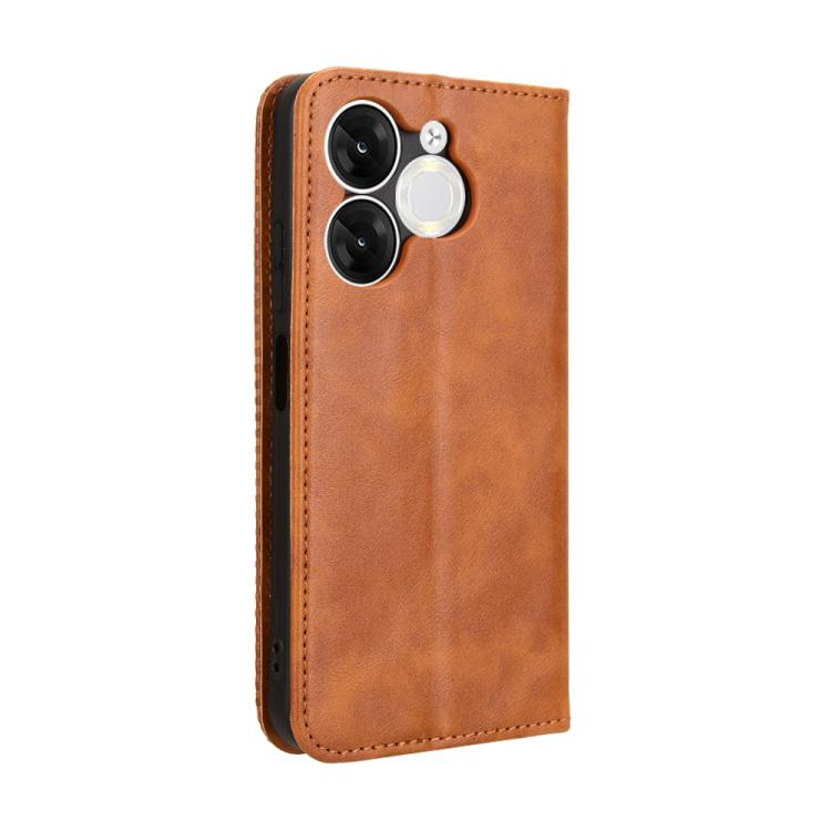 Funda de Cuero Itel A80 4G con Textura Retro y Hebilla Magnética (Marrón)