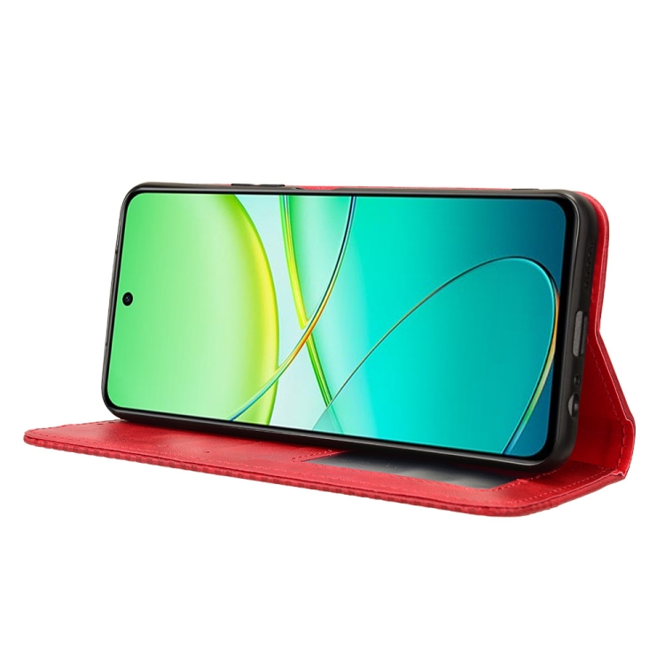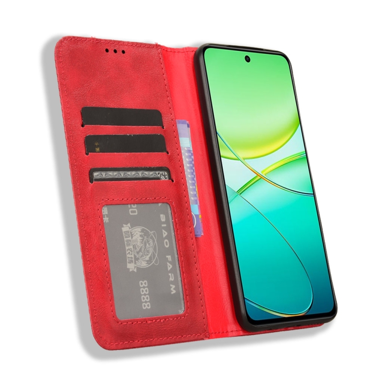 Funda de Cuero con Textura Retro y Hebilla Magnética para Vivo Y58 5G (Rojo)
