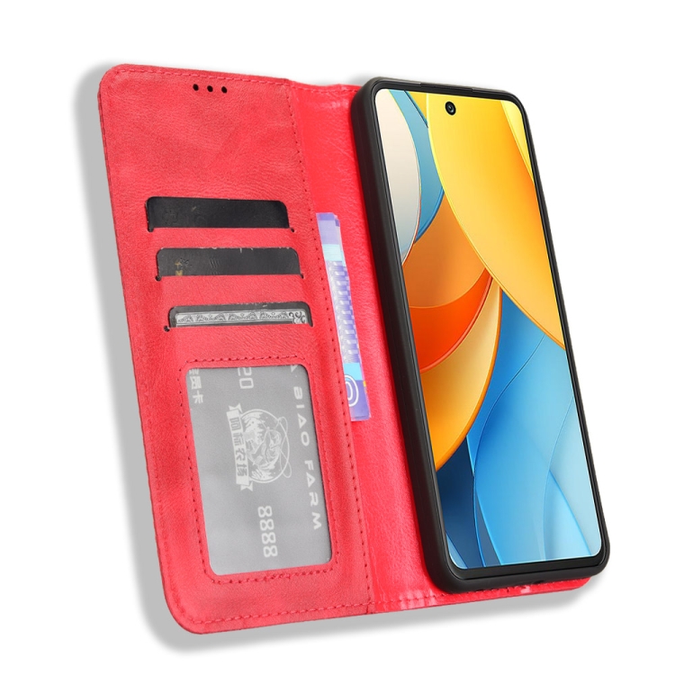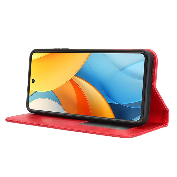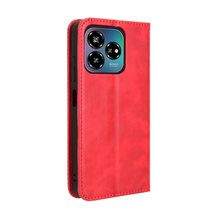 Funda Cuero ZTE Axon 60 Lite Blade V60 Vita Textura Retro Hebilla Magnética (Rojo)
