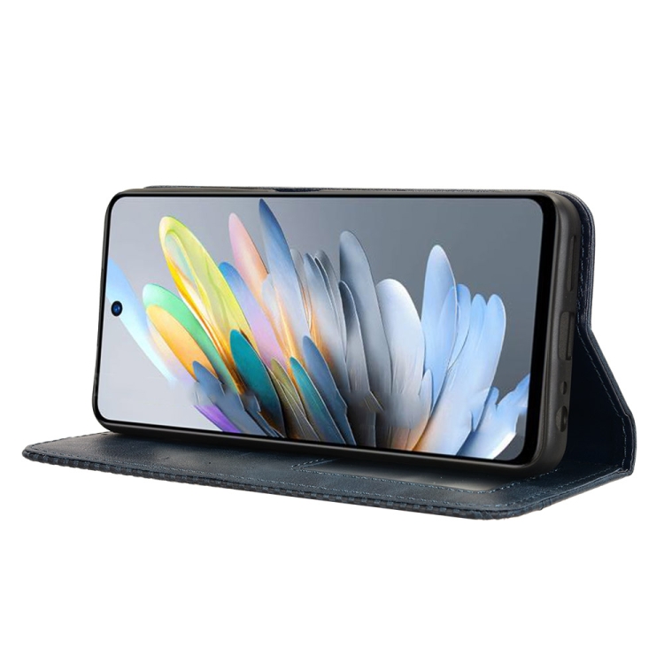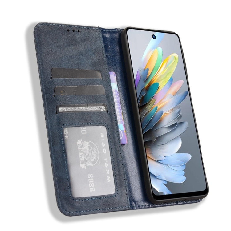 Funda de Cuero Textura Retro con Hebilla Magnética para ZTE Blade A75 4G (Azul)