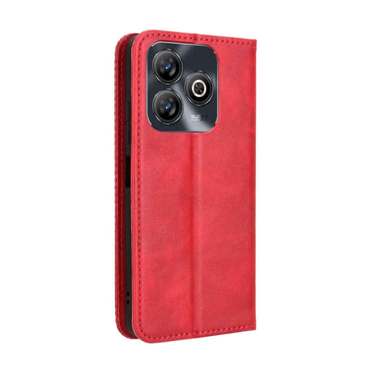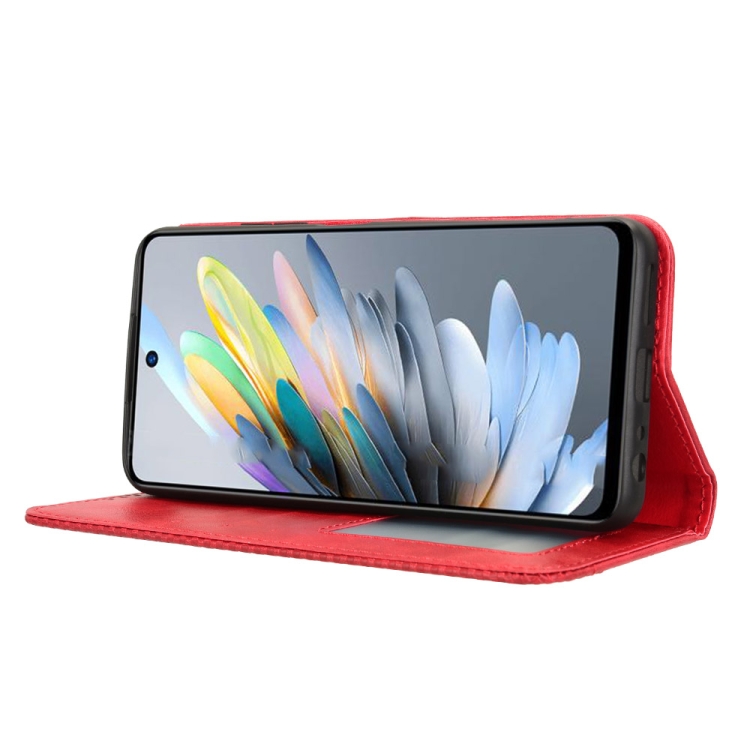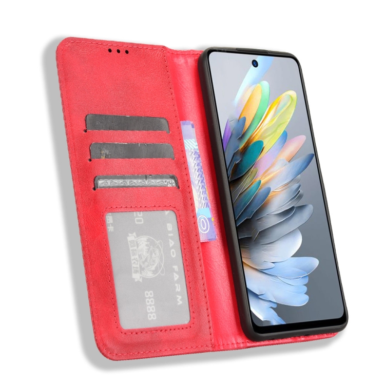 Funda de Cuero para ZTE Blade A75 4G con Textura Retro y Hebilla Magnética (Rojo)