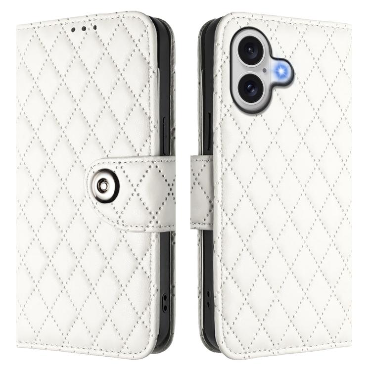 Funda de cuero con textura rómbica y cordón para iPhone 17 (blanca)