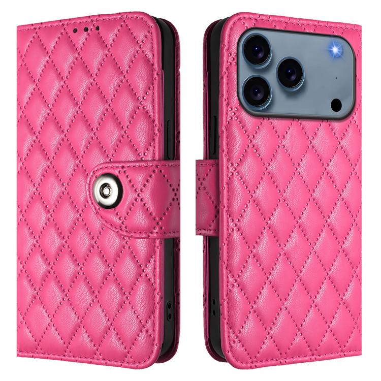 Funda de cuero con textura rómbica y cordón para iPhone 17 Pro Max (rosa y rojo)