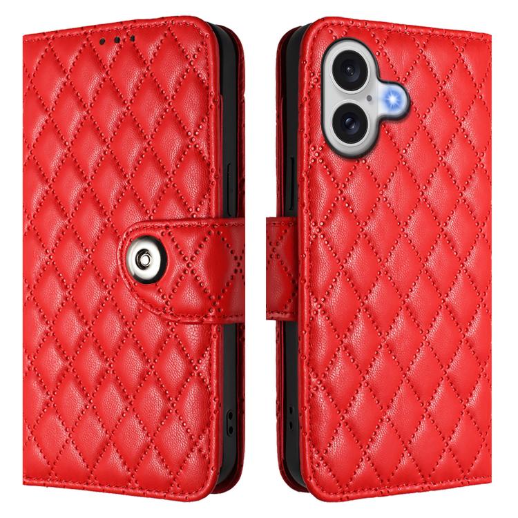 Funda de cuero con textura rómbica y cordón para iPhone 17 (roja)