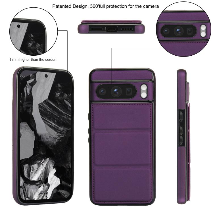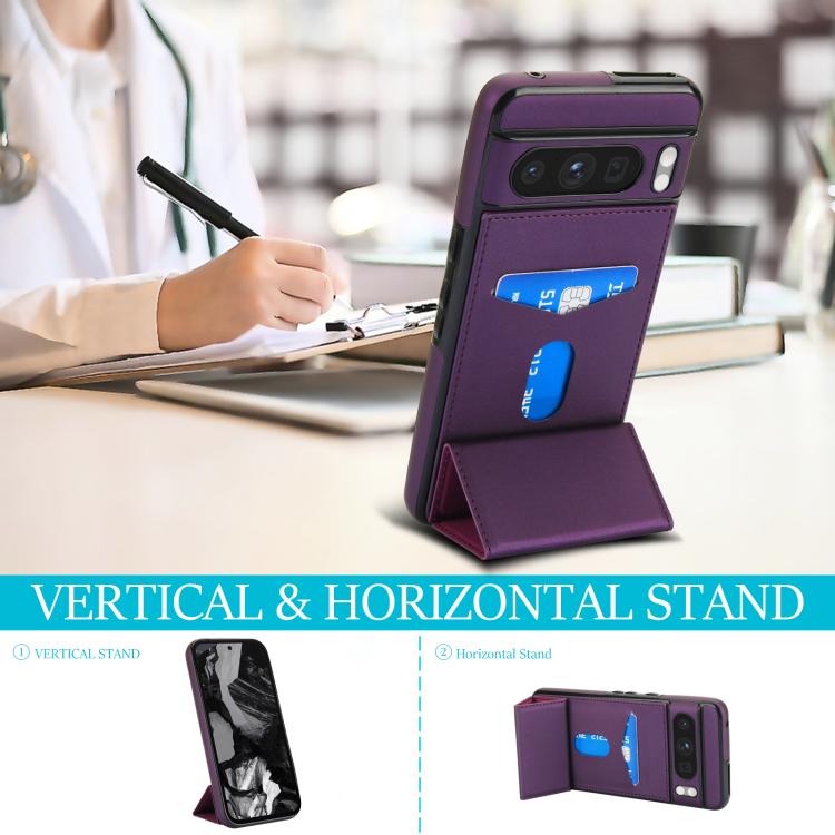 Funda de Cuero con Tres Pliegues y Ranura para Tarjetas para Google Pixel 8 Pro (Morado Oscuro)