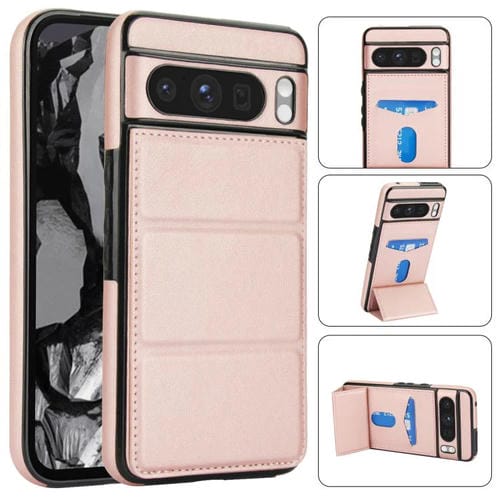 Funda de Cuero con Tres Pliegues y Ranura para Tarjetas para Google Pixel 8 Pro (Oro Rosa)