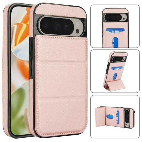 Funda de Cuero con Tres Pliegues y Ranura para Tarjetas para Google Pixel 9/9 Pro (Oro Rosa)