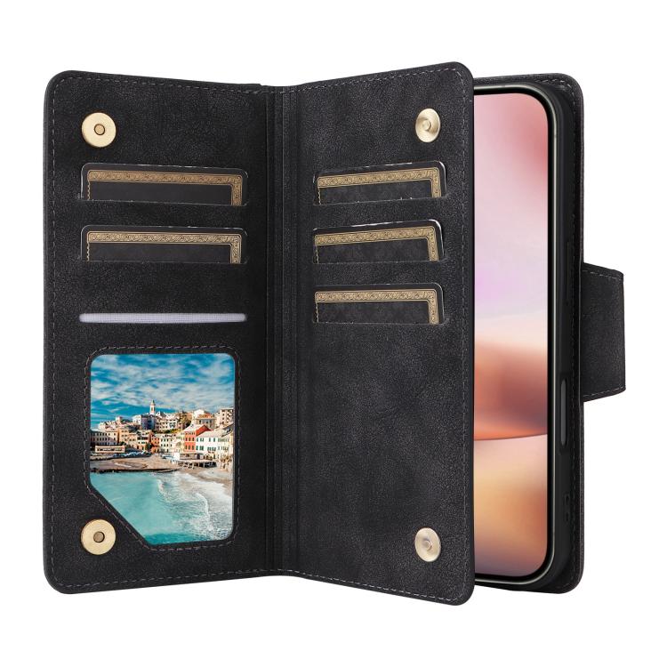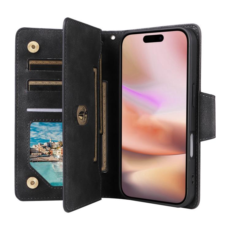 Funda de cuero con tres pliegues y hebilla de remache para iPhone 17 (negro)