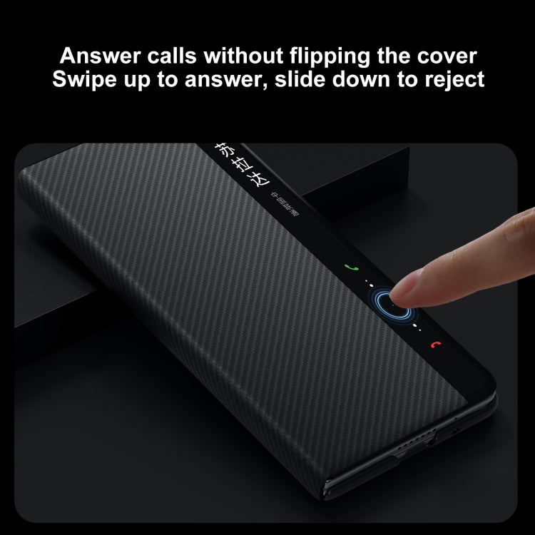 Funda de Cuero con Ventana Inteligente y Textura Kevlar 600D para Huawei Mate X6 (Morado)