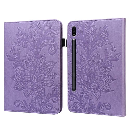 Funda para Tablet Samsung Galaxy Tab S8 Cuero Estampado Flores Encaje (Púrpura)