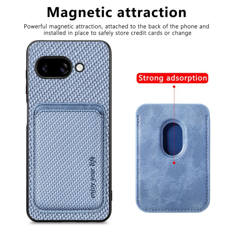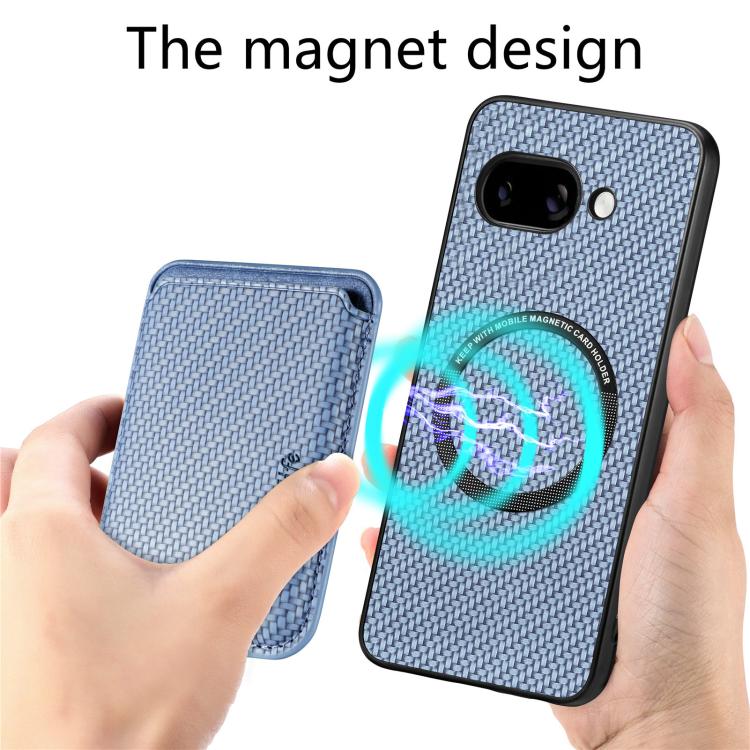 Funda Cuero Fibra de Carbono con Tarjetero Magsafe para Google Pixel 9A (Azul)