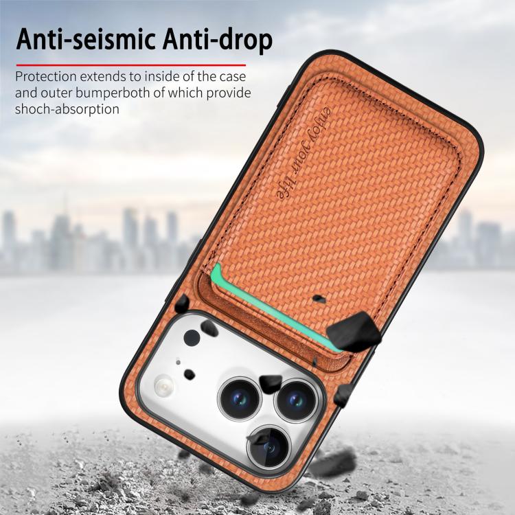 Funda de cuero de fibra de carbono con tarjetero Magsafe para iPhone 17 Pro Max (marrón)