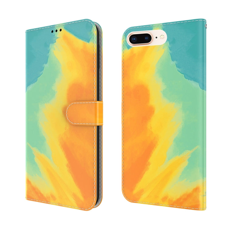 Funda de Cuero Flip Horizontal Patrón Acuarela Soporte Ranura Tarjeta Billetera iPhone 8 Plus 7 Plus (Hoja de Otoño)