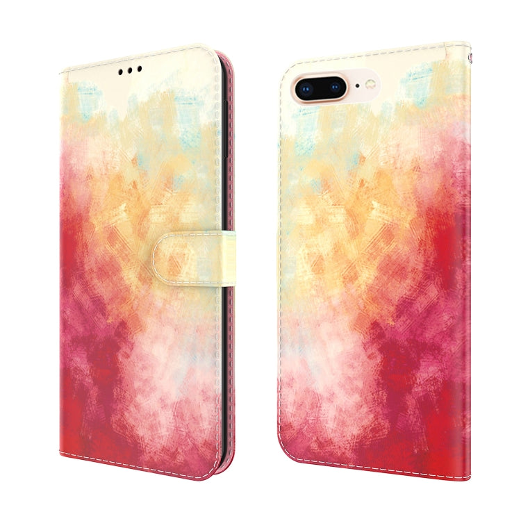 Funda de cuero flip horizontal patrón acuarela con soporte ranura tarjeta billetera para iPhone 8 Plus y 7 Plus (Spring Cherry)