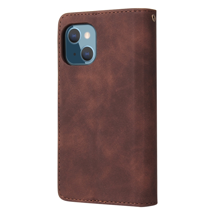 Funda de Cuero para iPhone 13 Mini Multifuncional con Ranura Tarjeta Soporte Billetera Cremallera Marco Fotos (Café)