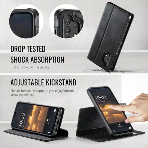 Funda de cuero desmontable CaseMe C49 con bloqueo RFID magnético para Samsung Galaxy A13/A04s (negra)