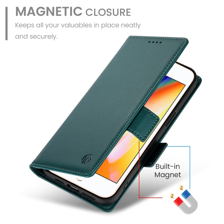 Funda de Cuero Esmerilado para iPhone 8 Plus/7 Plus con Cierre Magnético y Hebilla Lateral (Verde Oscuro)