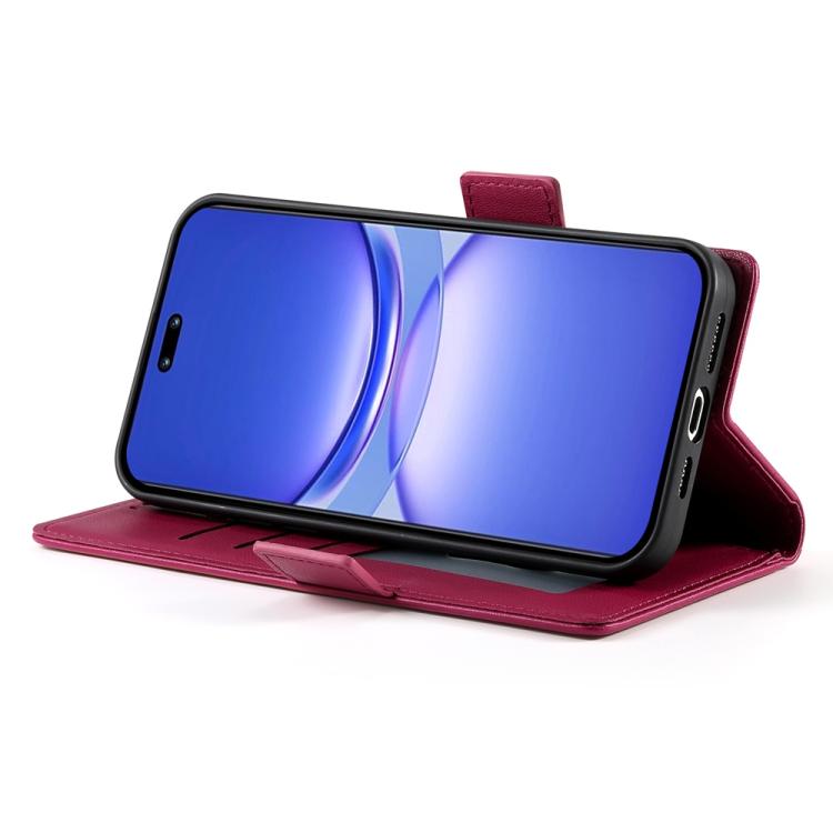 Funda de Cuero Esmerilado con Hebilla Lateral Magnética para Huawei Nova 13 Pro (Rojo Vino)