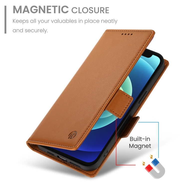 Funda de Cuero Esmerilado con Hebilla Lateral Magnética para iPhone 12 Mini (Marrón)