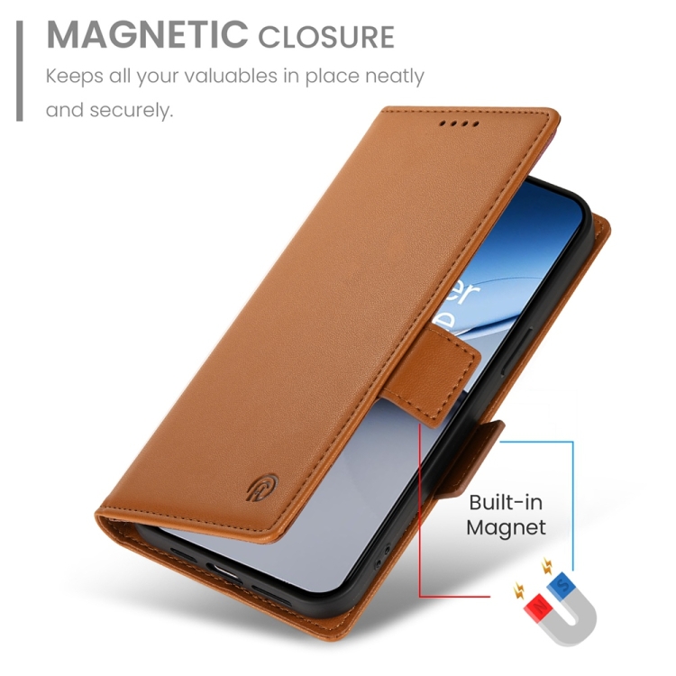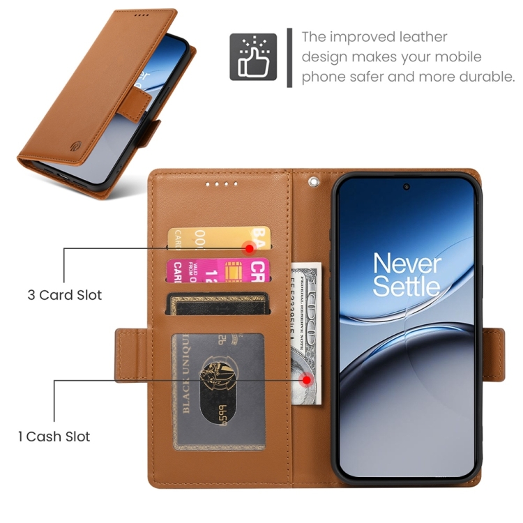 Funda de Cuero Esmerilado con Hebilla Lateral Magnética para OnePlus Nord 4 5G (Marrón)