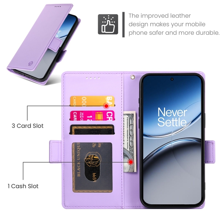 Funda de Cuero Esmerilado con Hebilla Lateral Magnética para OnePlus Nord 4 5G (Morado)