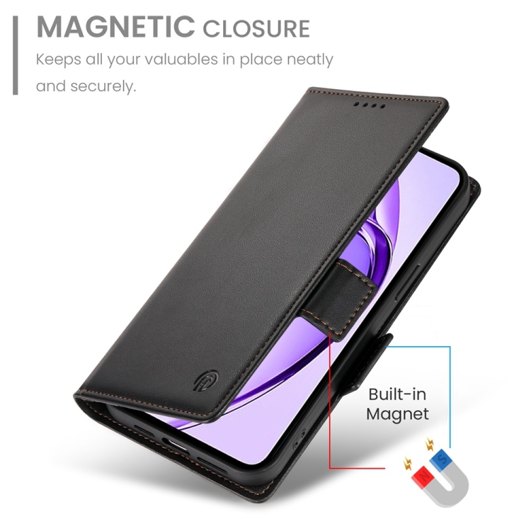 Funda de Cuero Esmerilado con Hebilla Lateral Magnética para Oppo A3 Pro 5G (Negro)