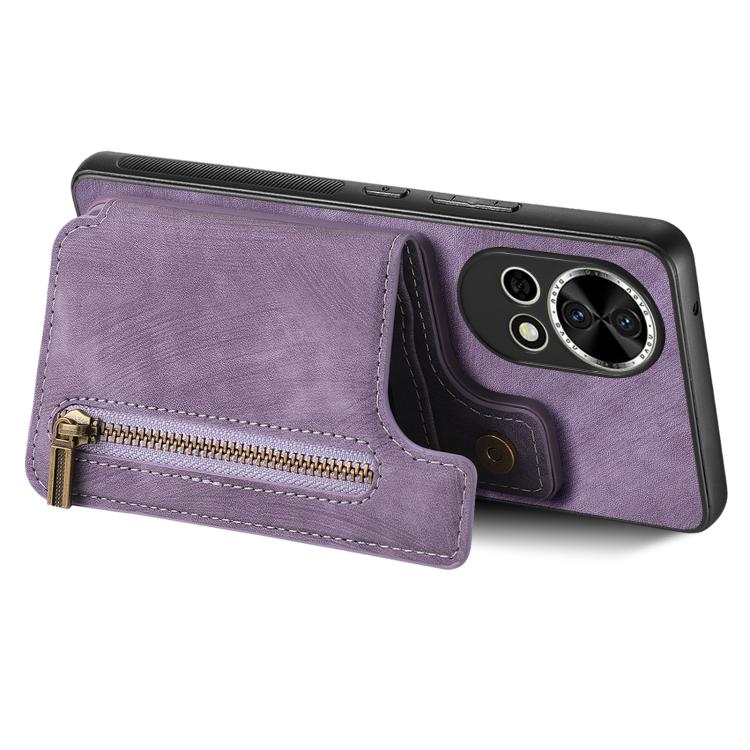 Funda de Cuero Estilo Retro con Cremallera para Huawei Enjoy 60 (Morado)