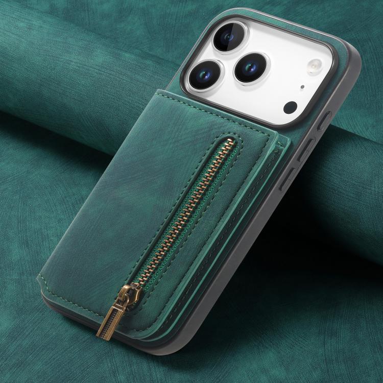 Funda de cuero estilo retro con cremallera para iPhone 17 Pro Max (verde)